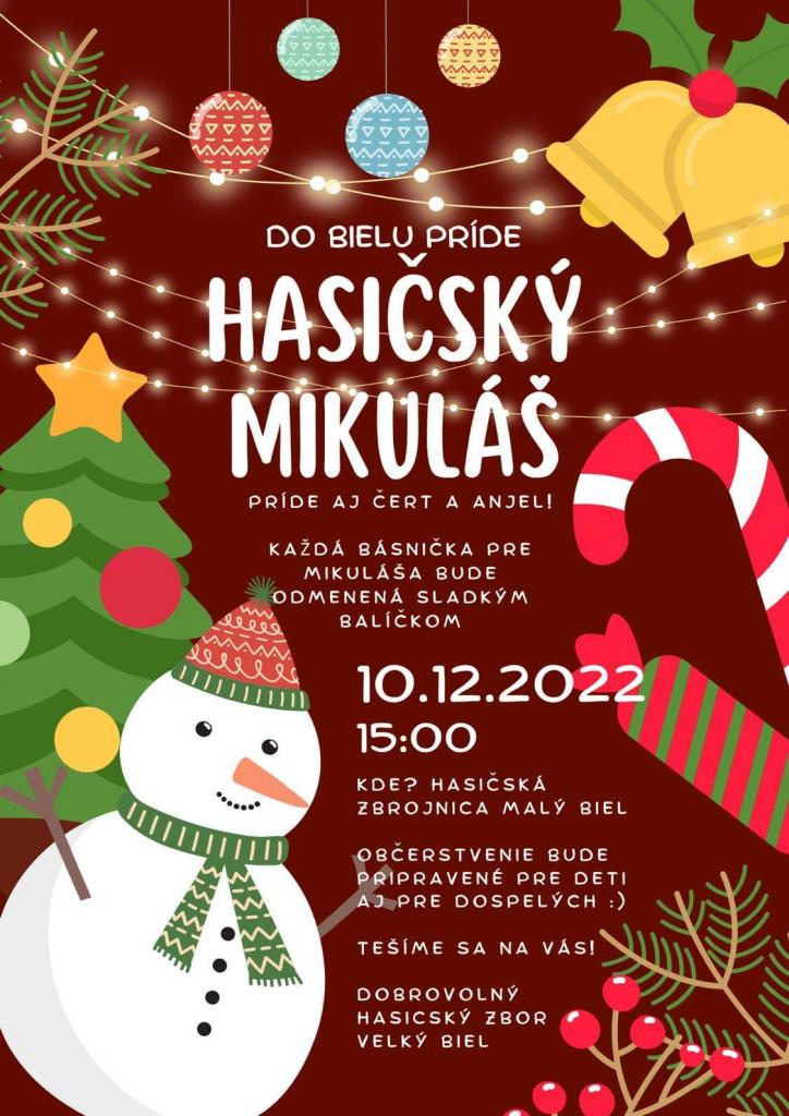DHZ Veľký Biel pripravuje "Hasičský Mikuláš" v sobotu 10.12.2022 o 15.00 hod. pri hasičskej zbrojnici v Malom Bieli.